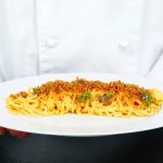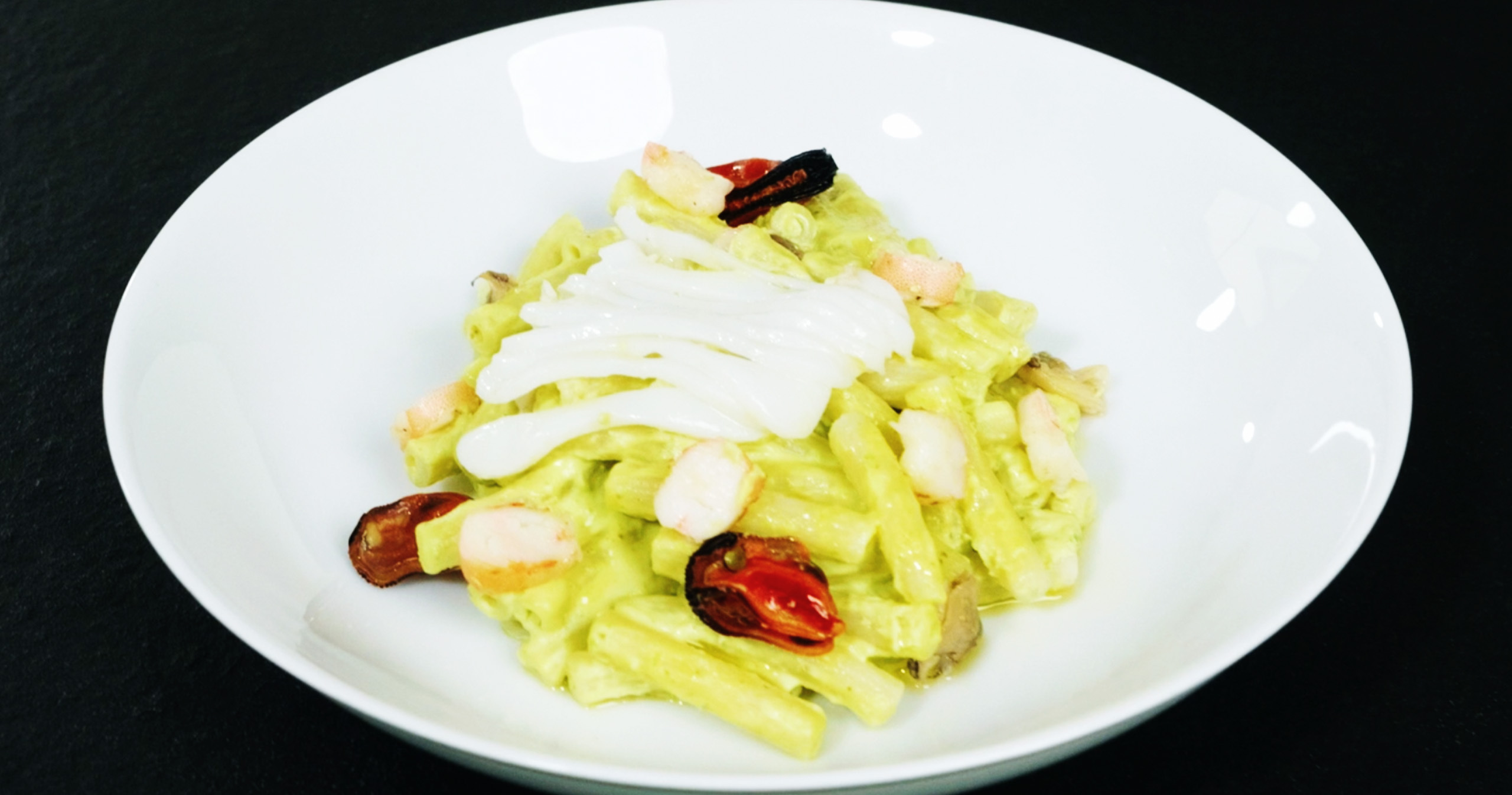 Sedanini La Pasta di Camerino con salsa tartara, vongole, cozze, code di gambero e seppioline
